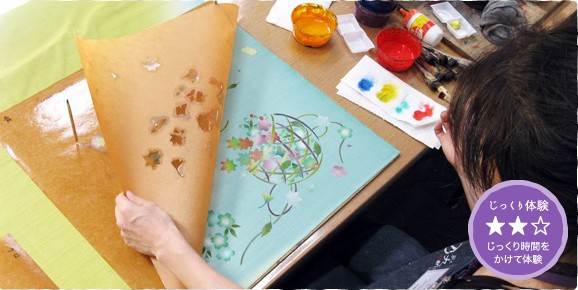 型紙で模様を染めますので、お子様でも大丈夫です。