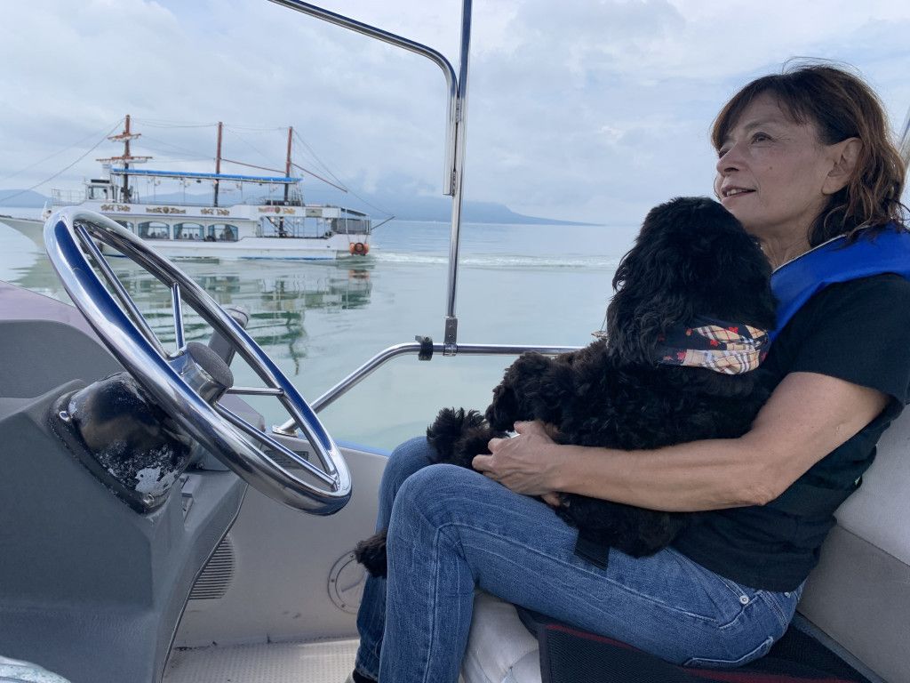錦江湾の美しい景色と雄大な桜島を海から臨むクルージング!新島上陸(Aコース)や桜島上陸(Bコース)も楽しめます。途中イルカに遭遇するかも!愛犬(小型犬)も同乗できますよ。