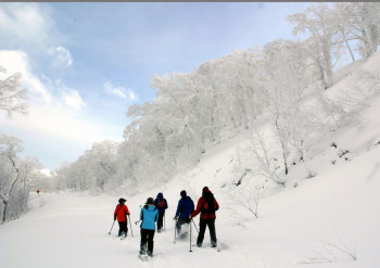 登別温泉と洞爺湖を結ぶオロフレ峠へ。 雪氷をまとって光り輝く木々と山々に感動。 幻想的な銀世界をのんびりお散歩しましょう。