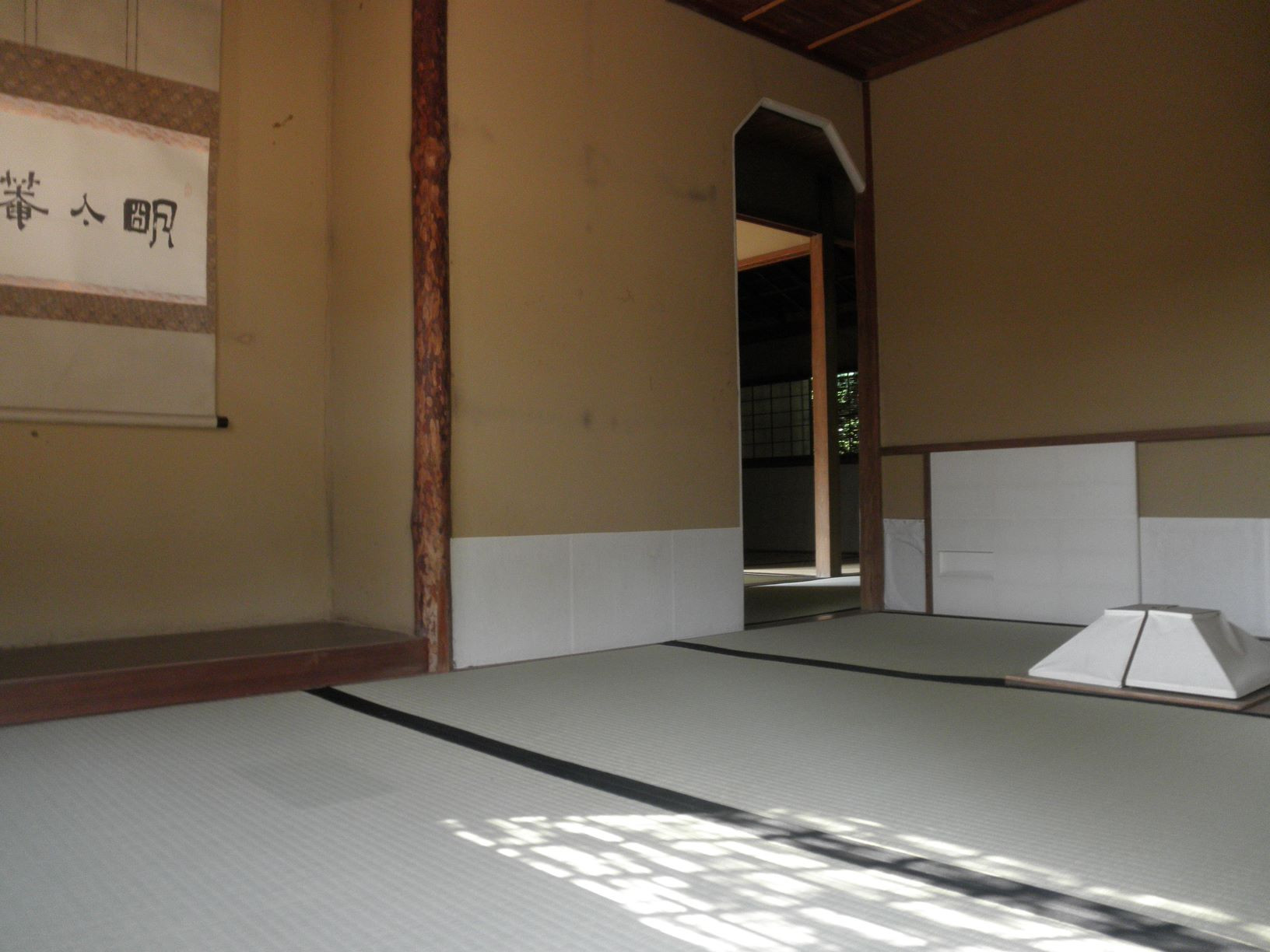 大名茶人として知られる松江藩七代藩主松平不昧公の好みによって、1779年に建てられた茶室。厚いかやぶきの入母屋造りで、不昧公の趣向が強く反映され、江戸時代末期を代表する数寄屋造りの茶室。中柱もなく、炉も点前畳に切る「向り切」とし、不昧公筆の「明々庵」の掛け軸を掲げた床の間は、奥行きの浅い床とするなど、定石に頓着しない不昧公の好みの一端を伺うことができます。明々庵と出雲流庭園を見ながらお抹茶(干菓子2種付き)もいただけます。(別途)