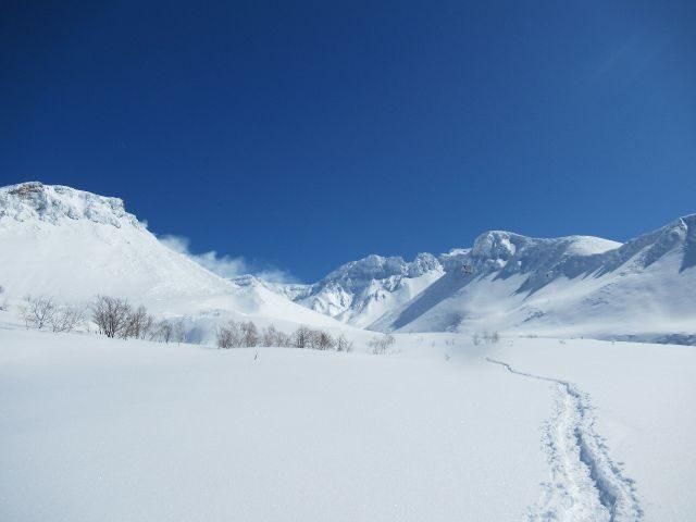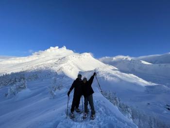 十勝岳のヌッカクシ火口(安政火口)までスノーシューで散策し、噴火の痕跡を見に行きます。下山後は、北海道で一番標高の高い温泉宿で入浴し温まり気分爽快!