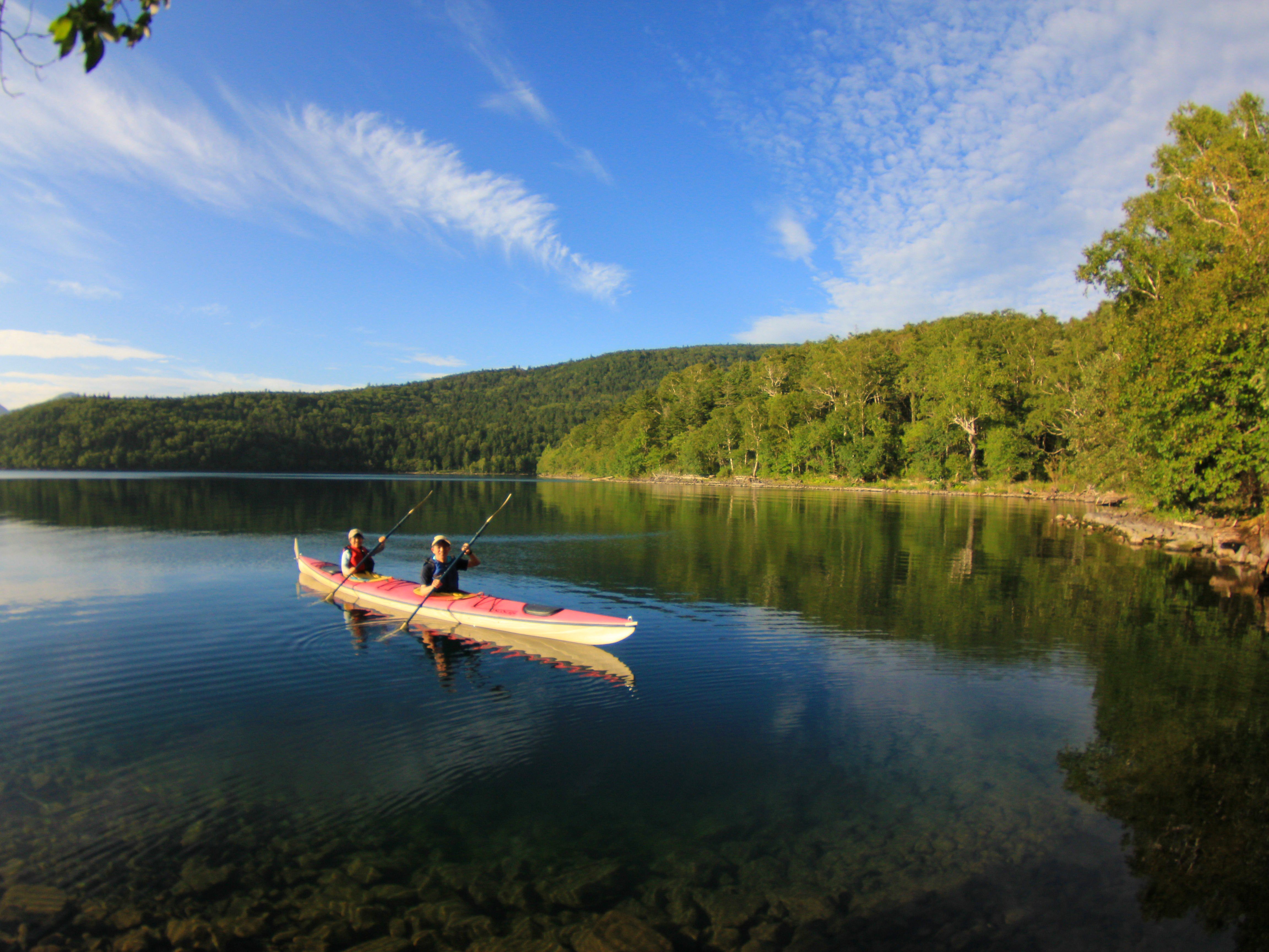 シーカヤックツーリングとトレッキングがセットになったプランです。 湖上を横断してから登山道を歩きます。 目指すのは北海道3大秘湖のひとつに数えられている東雲湖(しののめこ)です。 幻想的に広がる山奥の湖の風景。 ナキウサギの声が響く山奥の雰囲気を満喫しに行きましょう。