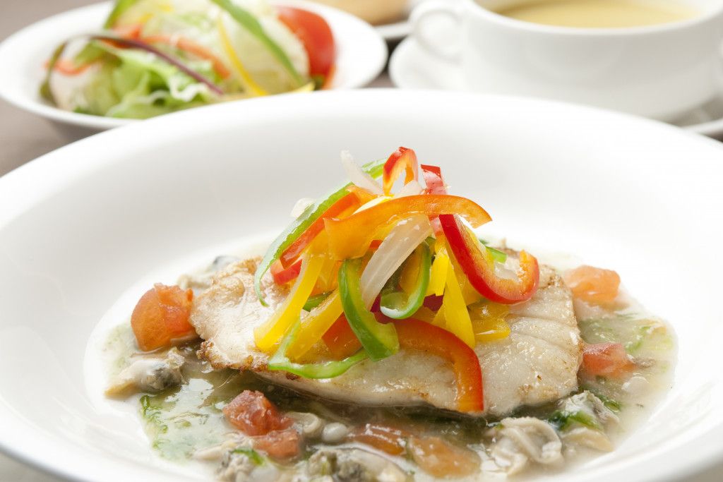1Fオールダイニング「オーシャングリル」にて、スープ、サラダ、月替わりのメインディッシュ、デザート、食後のコーヒー又はティーがセットになったおトクなランチセットをお召し上がり下さいませ。