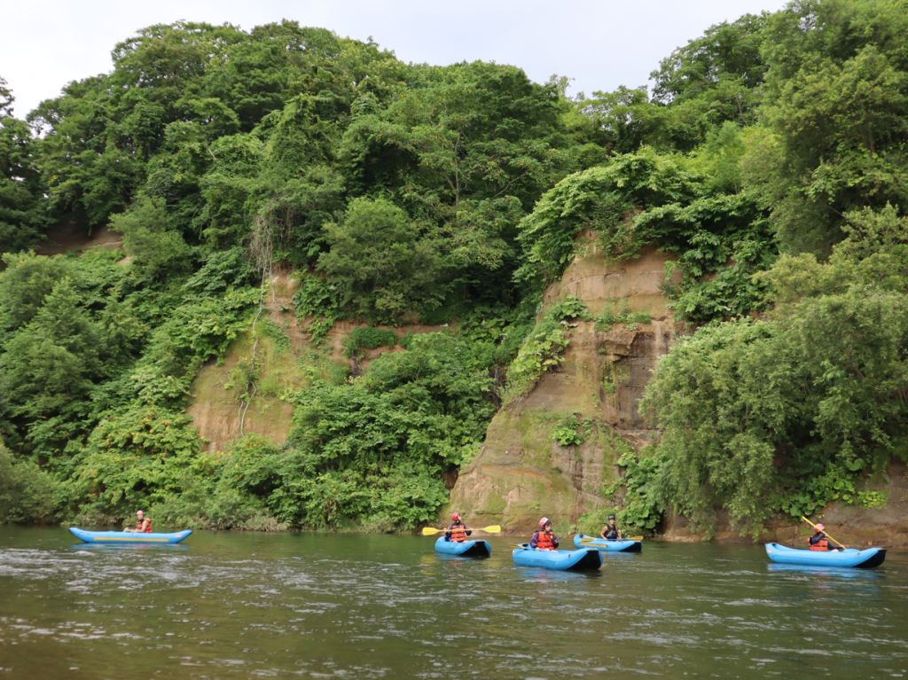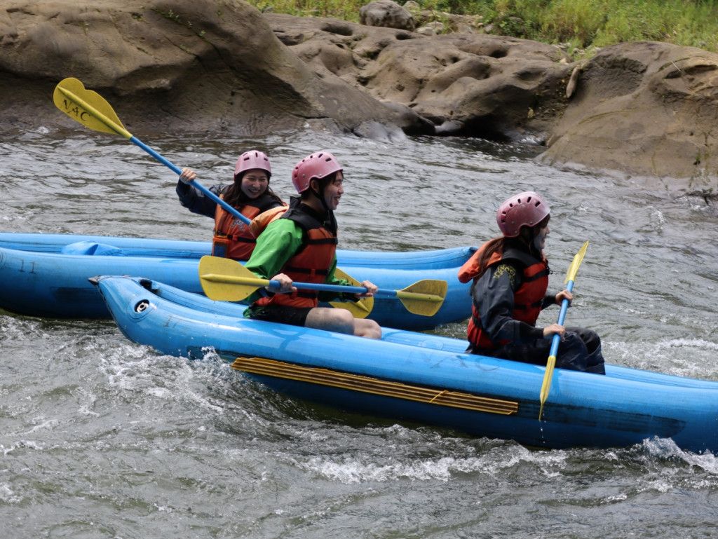 力を合わせて挑戦するラフティング対して、自分たちだけで挑むラフティングの川のコース、ガイドは別のボートで指示をだしたりして未然にトラブルを避けますので、ご安心ください!