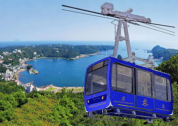 ロープウェイに乗って絶景と縁結びの名所、寝姿山へ!山頂公園には四季折々の花々が咲いてます。また、絶景の展望台や縁結びの藍染堂があります。