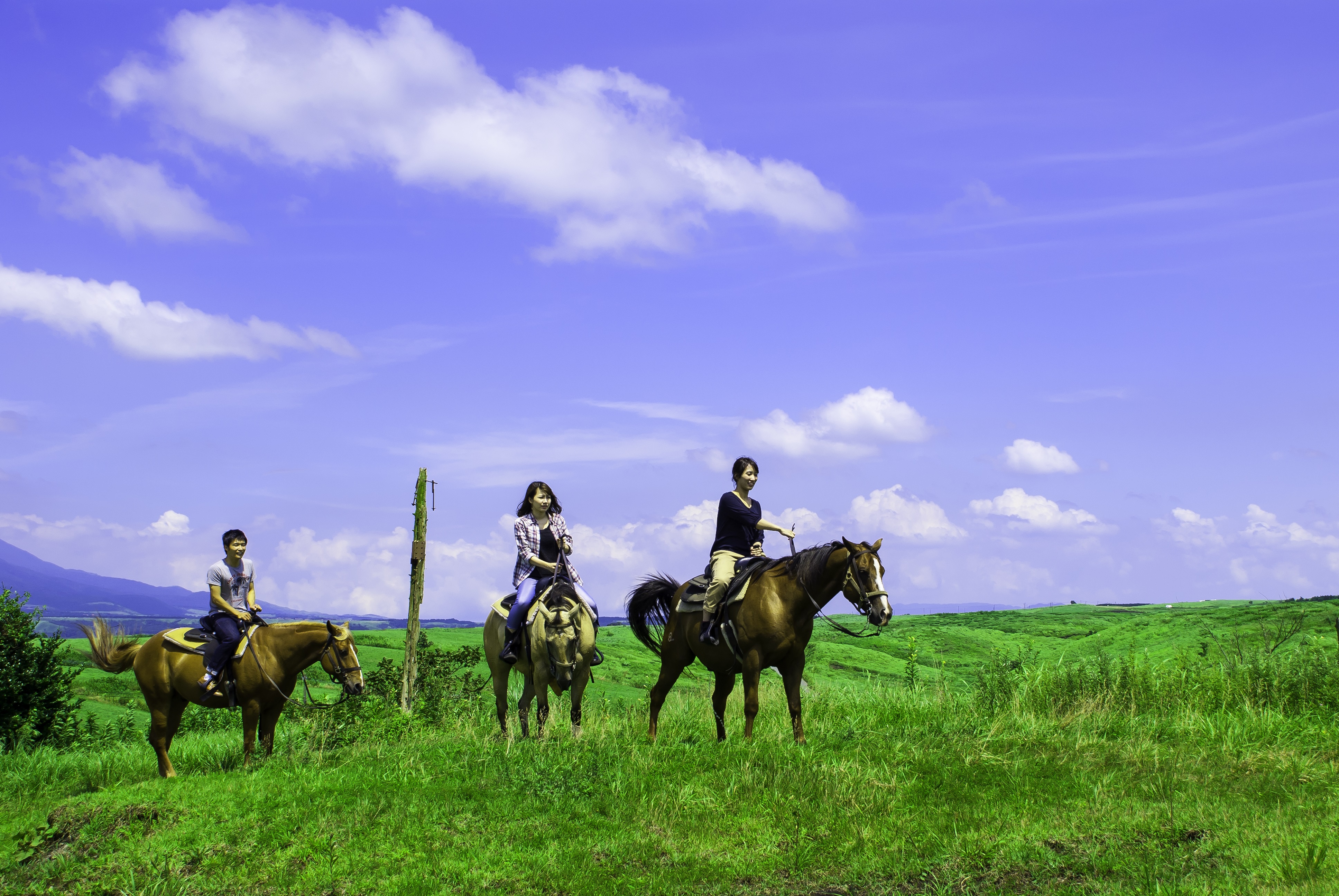 大自然に囲まれた熊本県阿蘇に位置する、馬とともに自然を楽しみ、安らぎを体験できる乗馬牧場です。
