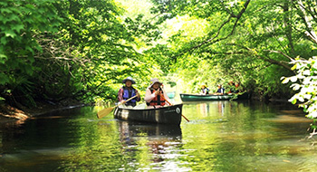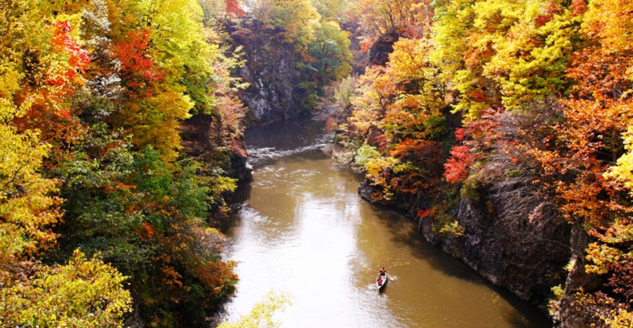 定山渓温泉横の渓谷をフィールドに、ボードに立ったり座ったりしながら景色を満喫。